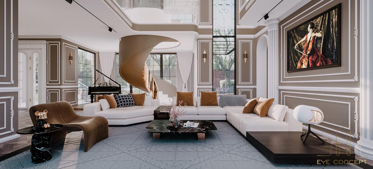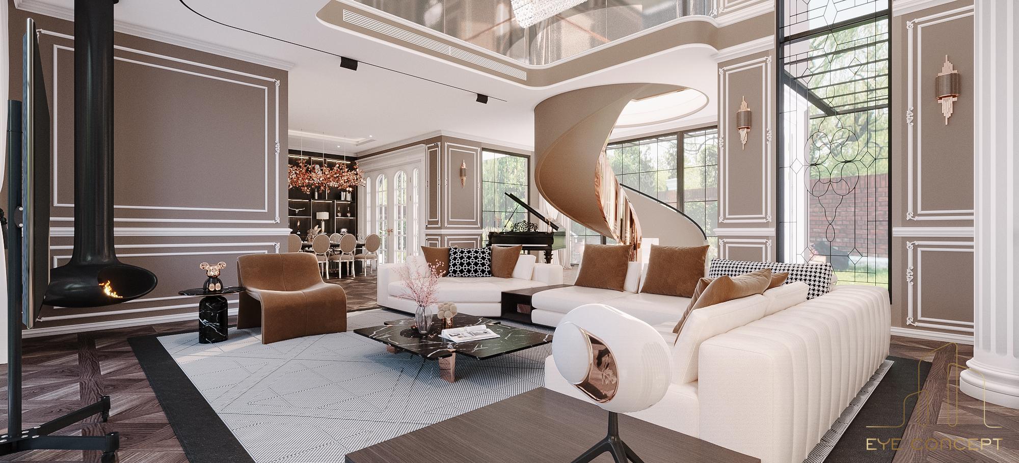– Thông tin: Biệt thự Đơn lập Marina – một trong những sự lựa chọn thông minh cho các cư dân hiện đại thuộc khu đô thị sinh thái Ecopark. Eye Concept hướng chủ đầu tư tới phong cách thiết kế Tân cổ điển (Neo Classic) để tạo nên một tổng thể sang trọng, đẳng cấp, mang đến những nét riêng của thời đại, kết hợp với phong cách nội thất Art Deco, sử dụng trường phái “more is more” (nhiều chi tiết, nhiều đồ trang trí) nhưng vẫn giữ nguyên được sự tinh tế, gần gũi trong không gian sống. Đặc biệt, sự phối hợp hài hòa của yếu tố sáng tối nhờ vào họa tiết, hoa văn chạm trổ trên nền tường , sử dụng vật liệu tự nhiên như gỗ , đá hoa cương với các gam màu nóng đậm, sang trọng, tạo nên một không gian đặc biệt.